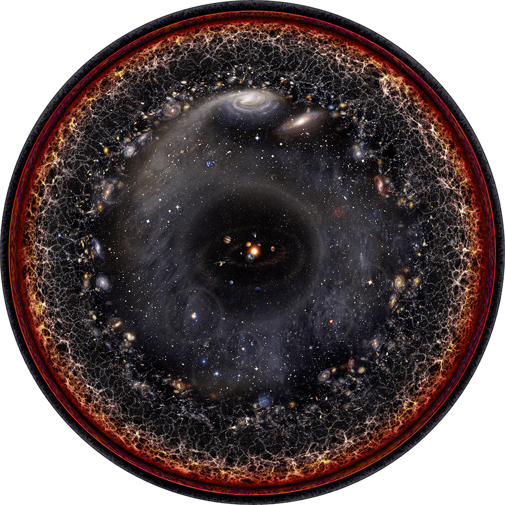 Ser man nøye etter på illustrasjonen i Figur 1 er det et sort mellomrom mellom CMB-laget og den ytre kanten av universet (som representerer tidens begynnelse).