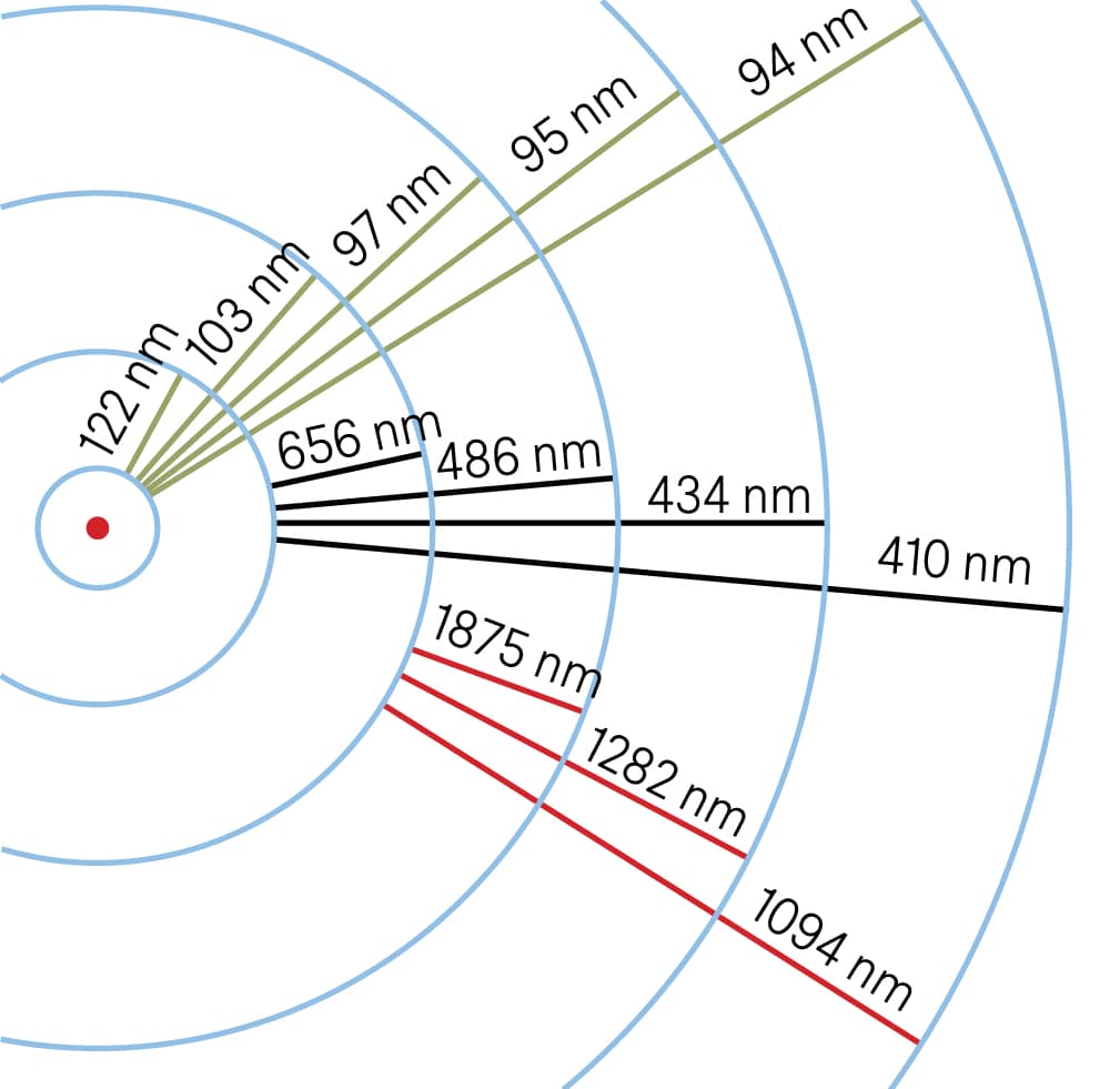 Det er kanskje en form for kosmisk ironi at for å forstå de store objektene i rommet må vi forstå den bitte lille verdenen som består av atomer, elektroner og fotoner. Et foton («lyspartikkel») sendes ut når et atom går fra et høyere energinivå til et lavere nivå. Energien til fotonet er lik energiforskjellen mellom de to nivåene. Det er veldig nyttig for astronomer at energinivåene til hvert atom og ion er unike. Det betyr at vi kan bruke tilstedeværelsen eller fraværet av lys ved disse energiene i spekteret til stjernen som et fingeravtrykk for tilstedeværelsen av et gitt grunnstoff eller ion i en stjerne. Dette er vårt hovedverktøy for å identifisere forskjellige grunnstoffer (eller til og med molekyler!) i stjerner, planeter og andre himmellegemer.
